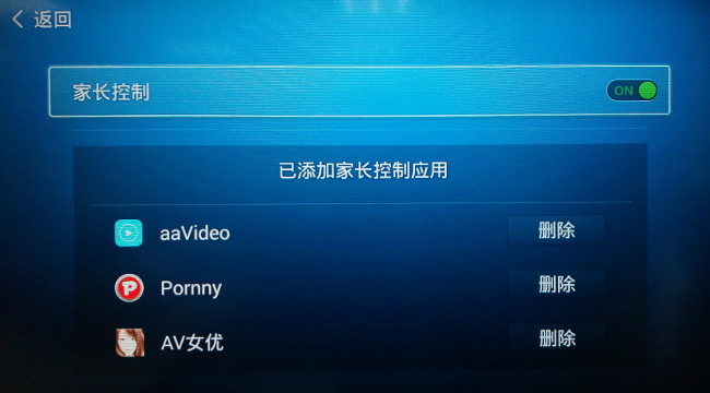 十三. 若有需要用密碼保護的 APP 可以設定到家長保護控制中, 目前預設的