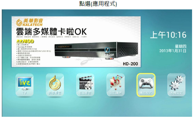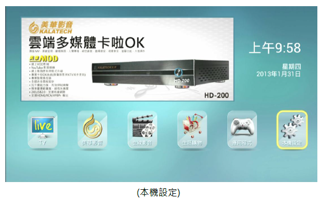 1. 網路線連接方式:中華電信 ADSL / 光世代(數據機) → 透過網路線直接接到撥放器(網路孔)