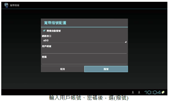 1. 請輸入中華電信或其他網路公司提供給你的帳號卡,其中的「用戶識別碼」(12345678),就是我們聯網電視盒所要輸入的帳號,但需完整帳號,(中華電信的帳號例如:12345678@hinet.net)這樣的格式及密碼。