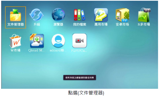 進入(應用程式)中的(文件管理器),再選擇要安裝的 APK 進行(下載)後再 (安裝)。安裝完後,再進行